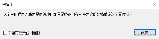 "这个应用程序无法为复原缓冲区配置足够的内存。将为这份文档重设这个复原链。"