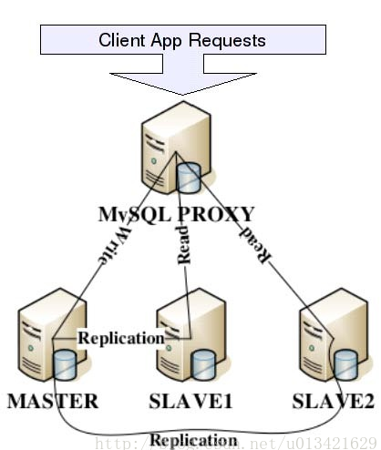 MySQLProxy实际上是在客户端请求与MySQLServer之间建立了一个连接池。所有客户端请求都是发向MySQLProxy,然后经由MySQLProxy进行相应的分析,判断出是读操作还是写操作,分发至对应的MySQLServer上。对于多节点Slave集群,也可以起做到负载均衡的效果。
