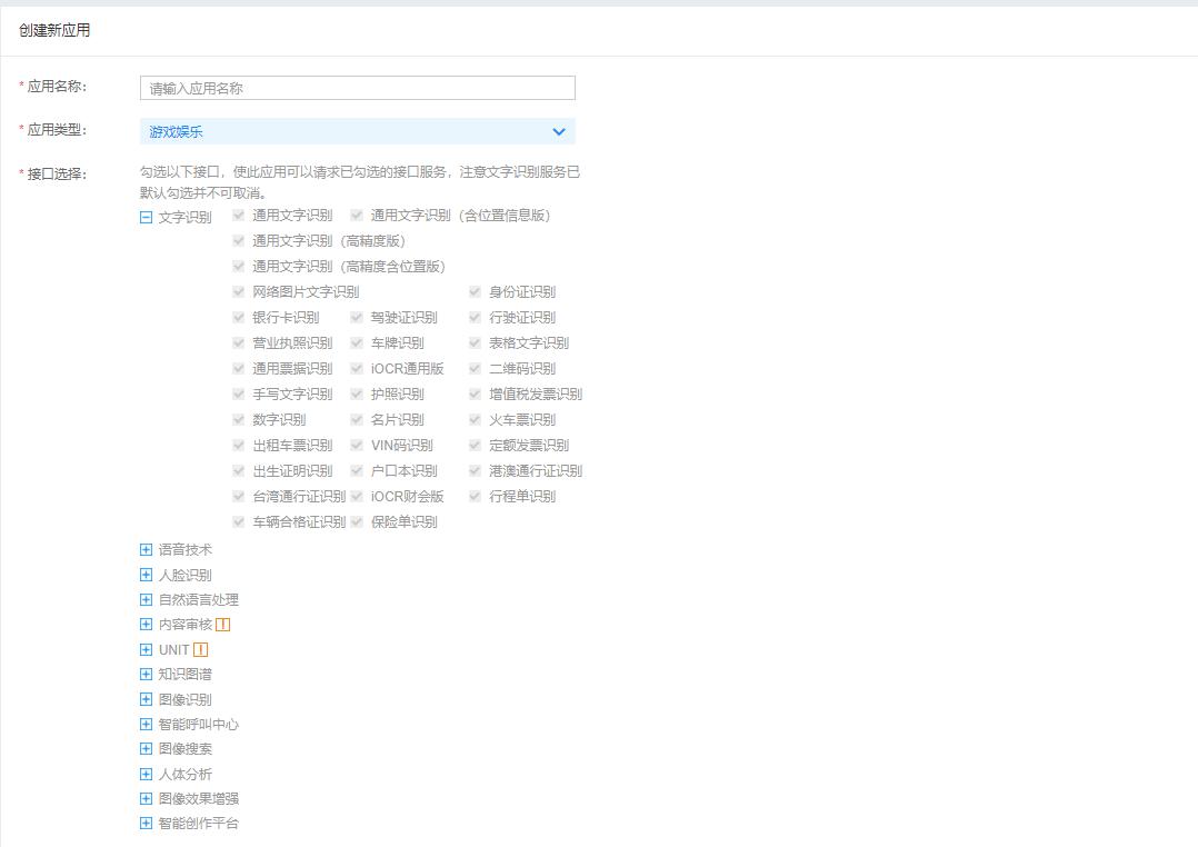 接口选择:默认勾选了语音识别和语音合成。保持默认即可