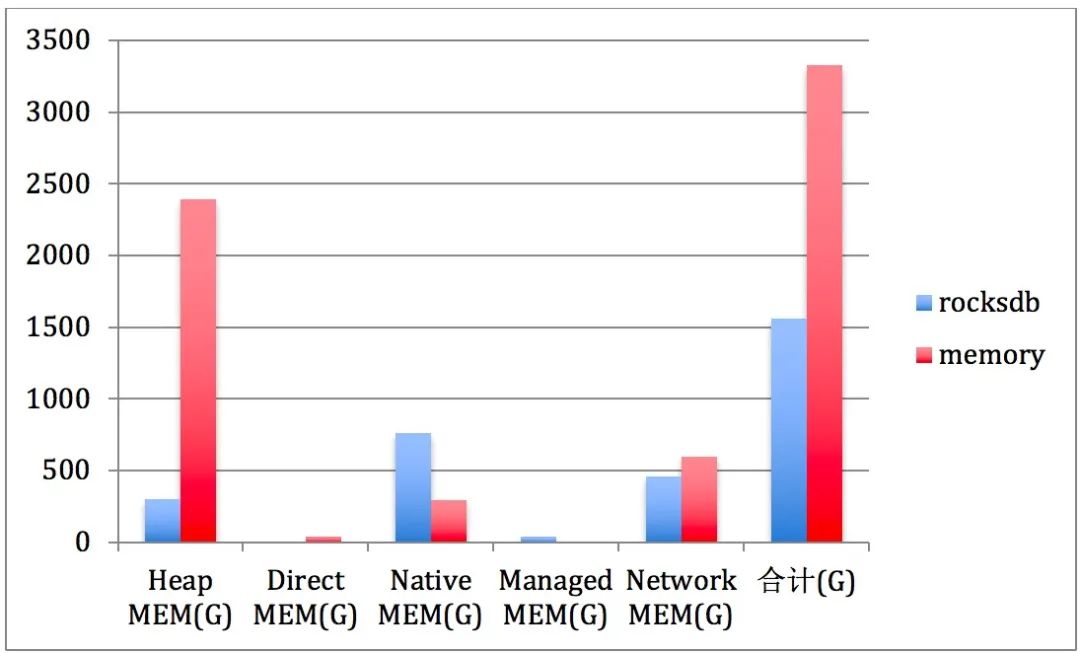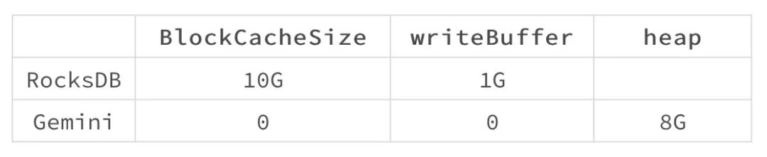 使用 RocksDB 则需要较少的 Heap 空间即可,加大 Native 区域用于读缓存,结合 RocksDB 的高效磁盘读写策略仍然有很好的性能表现。