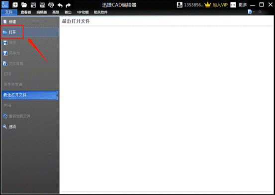 第一步:下载、安装好软件的最新版本后,打开软件点击软件页面【文件】-【打开】按钮,把需要修改标注尺寸样式的CAD文件添加进来。