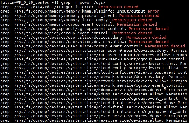 由于 /sys 文件夹下存在很多非 root 用户无法访问的文件,这样就会造成很多 Permission denied 错误,并被输出到屏幕上。