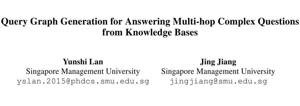 论文标题:Query Graph Generation for Answering Multi-hop Complex Questions from Knowledge Base