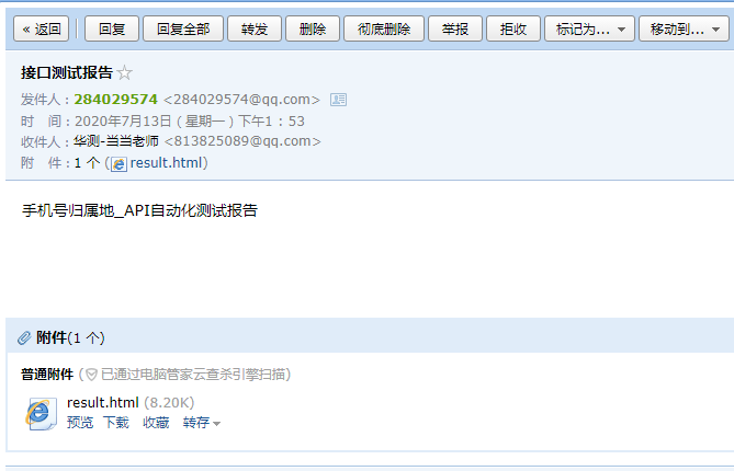 测试完成之后,我们可以使用zmail模块提供的方法发送html格式测试报告