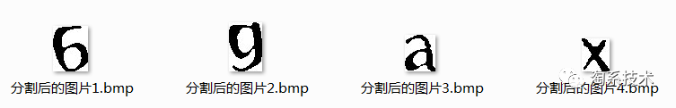 该案例中就是去除两条干扰线,常规的去噪算法有很多(洪水法等等),这里根据图片的特点采用了两种去噪算法,一种是自己根据图片的特征实现的算法,另一种是“八值法”。去噪后的效果如下,可以看到去除了大部分的干扰线(剩下的根据字宽可以直接过滤掉),但是部分字符也变细了,所以这一步的去噪阀值需要不断调整,在去噪的基础上要尽量保持原图的完整和可读性。