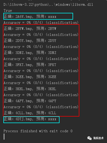 对比一下用libsvm来识别的情况,左图是单个字符样本量为40张的时候识别情况,右图为单个字符样本量为100的时候的样本量(识别结果为xxxx的表示切割字符失败):