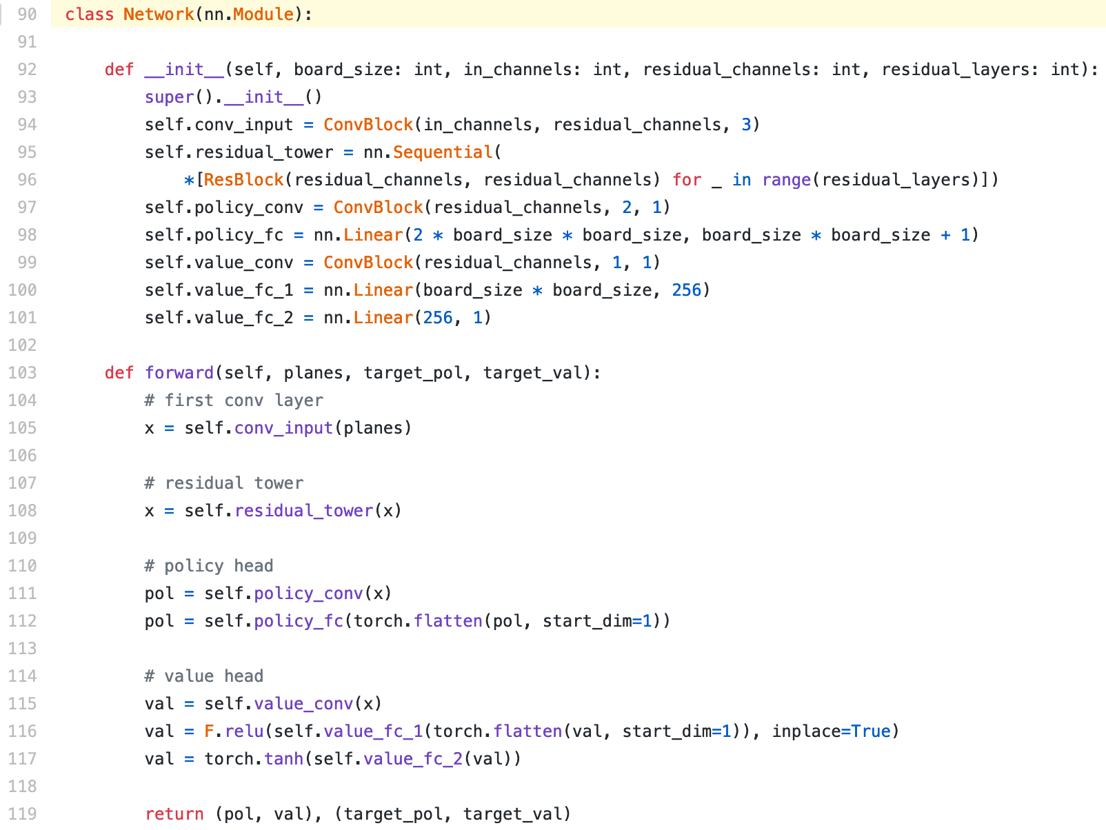 在这个博客中,我将解释这个项目的主要细节,以便你能够轻松理解我所做的工作。你可以在这里阅读我的代码:https://github.com/yukw777/leela-zero-pytorch