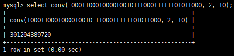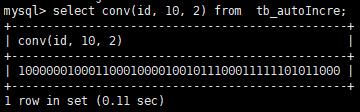 select conv(id, 10, 2) from tb_autoIncre;