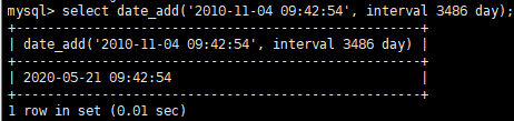 select date_add('2010-11-04 09:42:54', interval 3486 day);