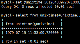 set @unixtime=301204389720/1000;
