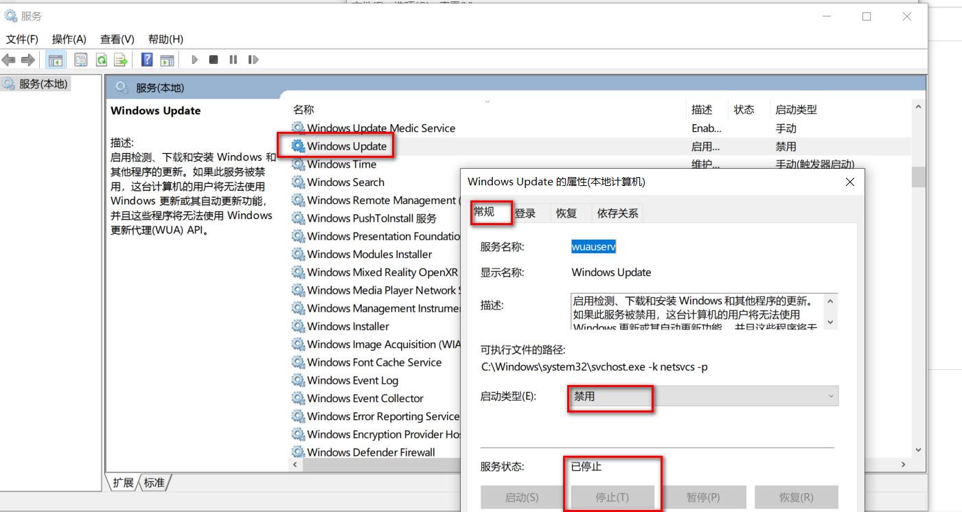 - 在win10服务中禁止自动更新