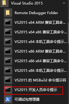 3.安装完毕后,使用 VS2015 下的 VS2015开发者命令提示,进入控制台模式。