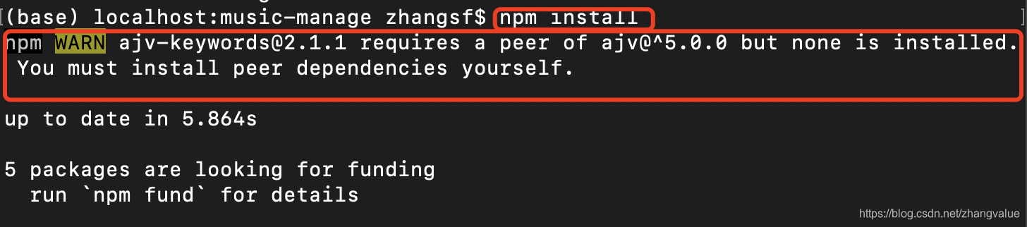 npm WARN ajv-keywords@2.1.1 requires a peer of ajv@^5.0.0 but none is installed. You must install peer dependencies yourself.