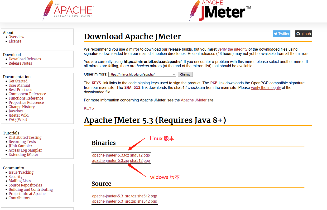 - 下载地址:http://jmeter.apache.org/download_jmeter.cgi,(Windows版本下载 .zip,Linux版本下载 .tgz)