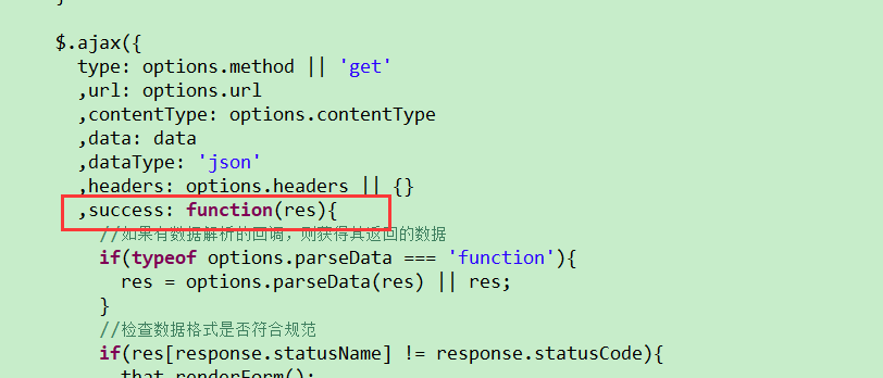 在此函数中ajax异步请求成功回调的success函数中最后添加如下代码: