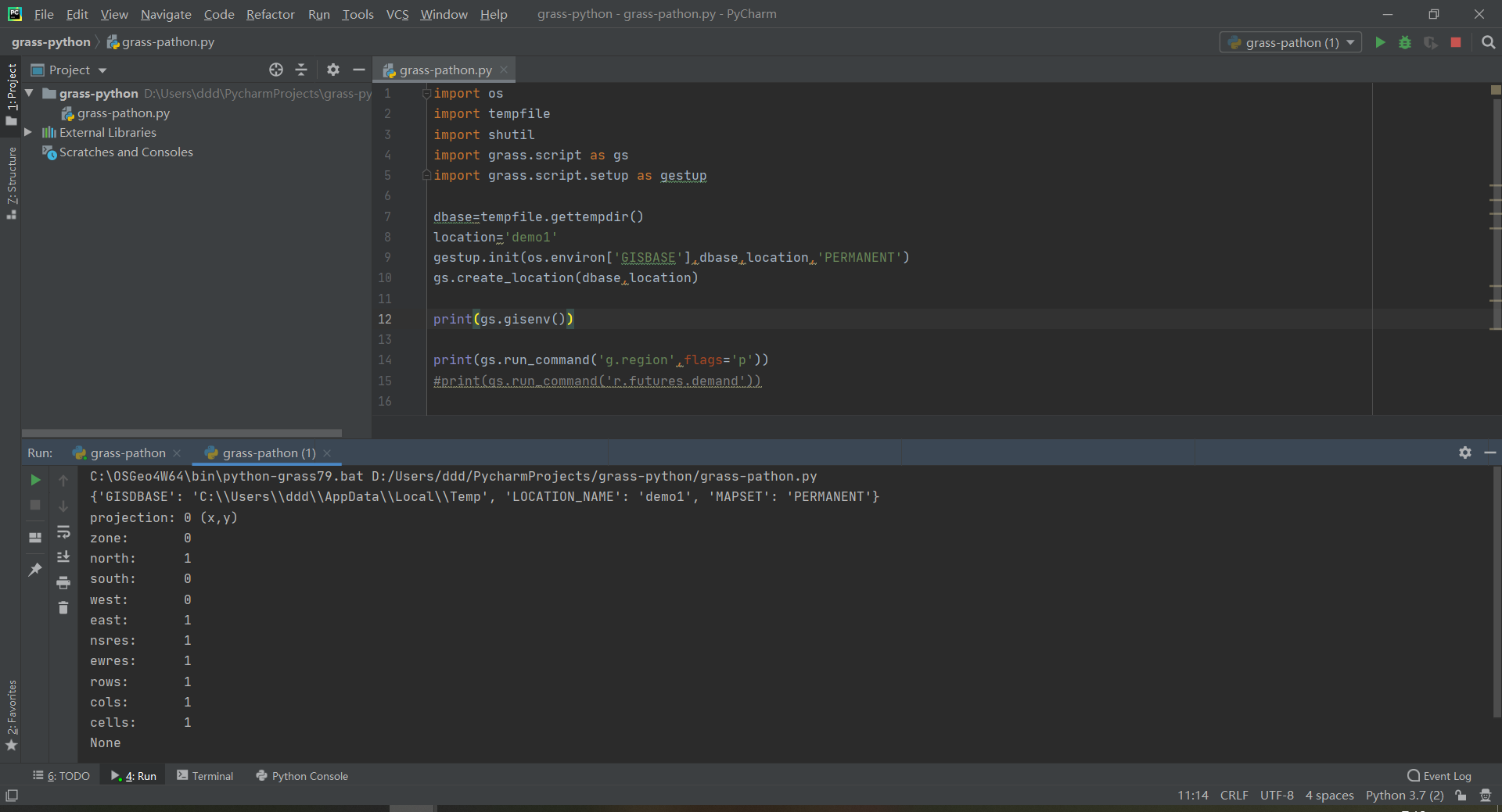 Windows10 下GRASS GIS Python 配置使用Python IDE运行GRASS时需要修改.dll文件,配置过程过于复杂,通过进一步查询发现,在最新的7.9版本提供了一个批处理文件(.bat),可以自动在PyCharm配置GRASS的运行环境。