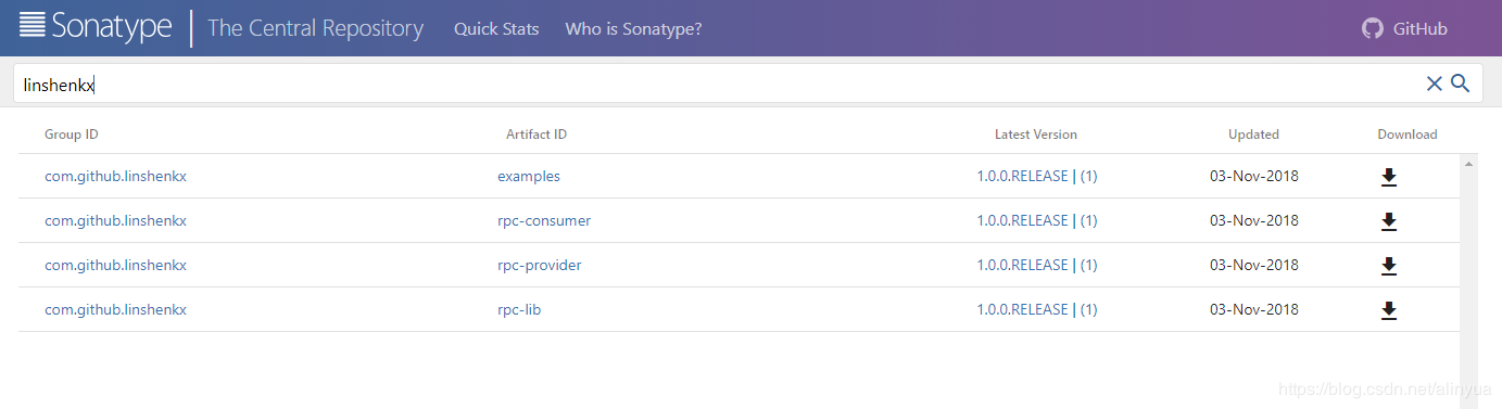 发布成功的工程可以通过后面两个仓库查看和下载,晚点会同步到中央仓库里。