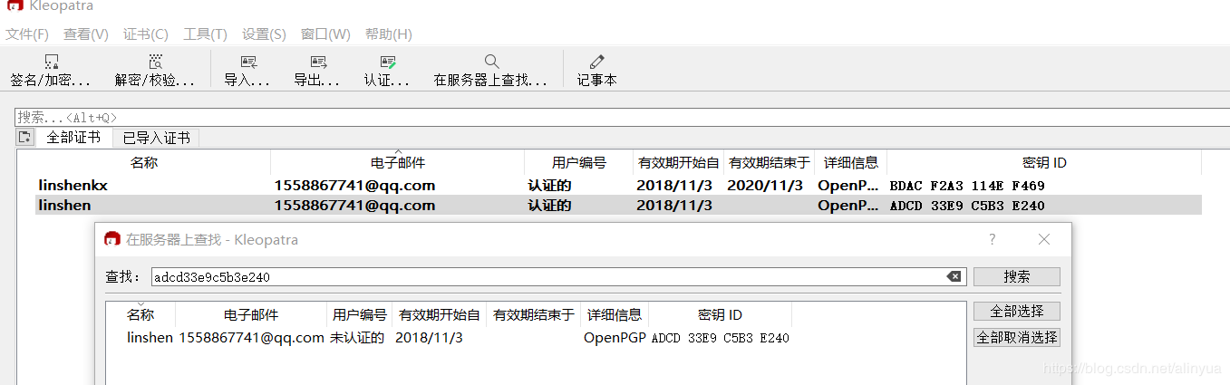 注意:这里有个bug,如果生成的密钥ID的第一个字符是数字0的话,在下面使用maven-gpg插件的时候可能会被自动去掉导致密钥找不到,所以保险起见遇到这种情况就重新生成证书