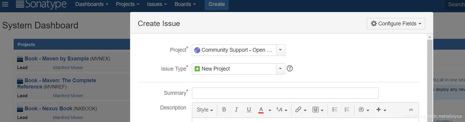 然后点击最上面的 Create创建Issue,选择Project和Issue Type如下