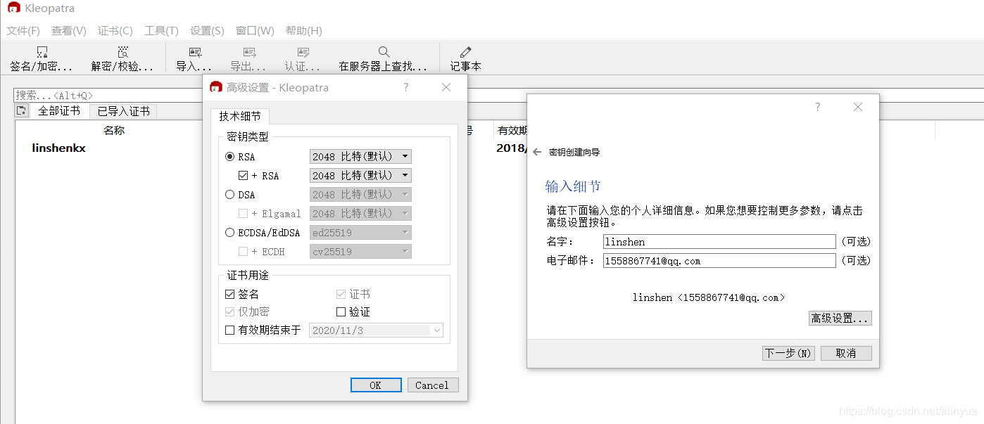 这里我推荐使用gpg的gui工具,可视化生成密钥,也可以使用命令行。