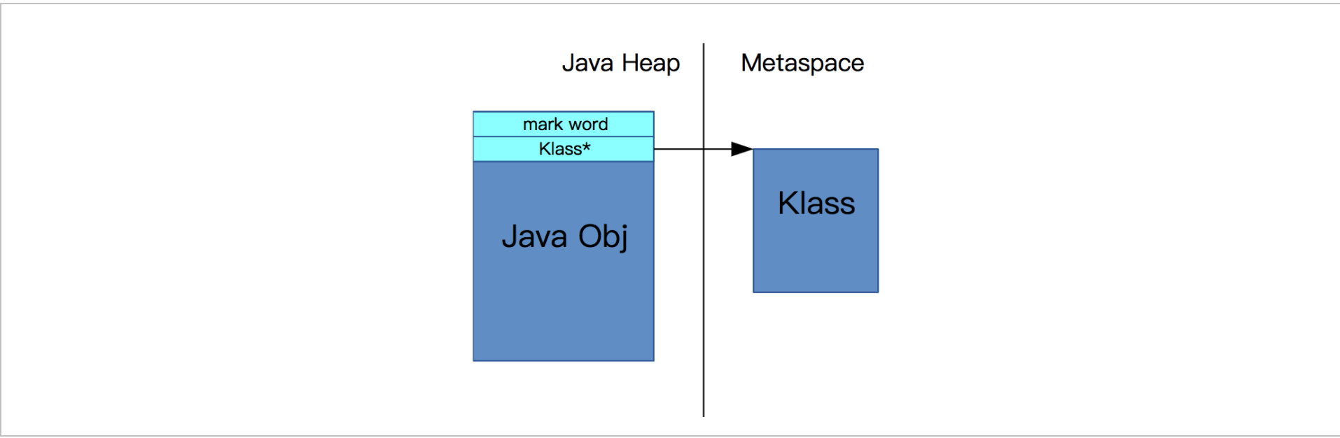 每个 Java 对象,在它的头部,有一个引用指向 Metaspace 中的 Klass 结构。