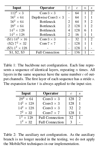 绿色曲线包围的部分为辅助子网络,在训练时预测人脸姿态(主要包括三个姿态角,,有文献表明给网络加这个辅助任务可以提高定位精度,具体参考原论文),这部分在测试时不需要。