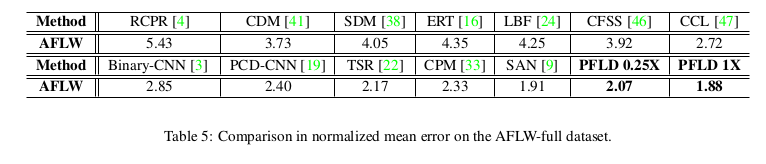 下图是该算法在AFLW数据集上与其他算法的精度比较: