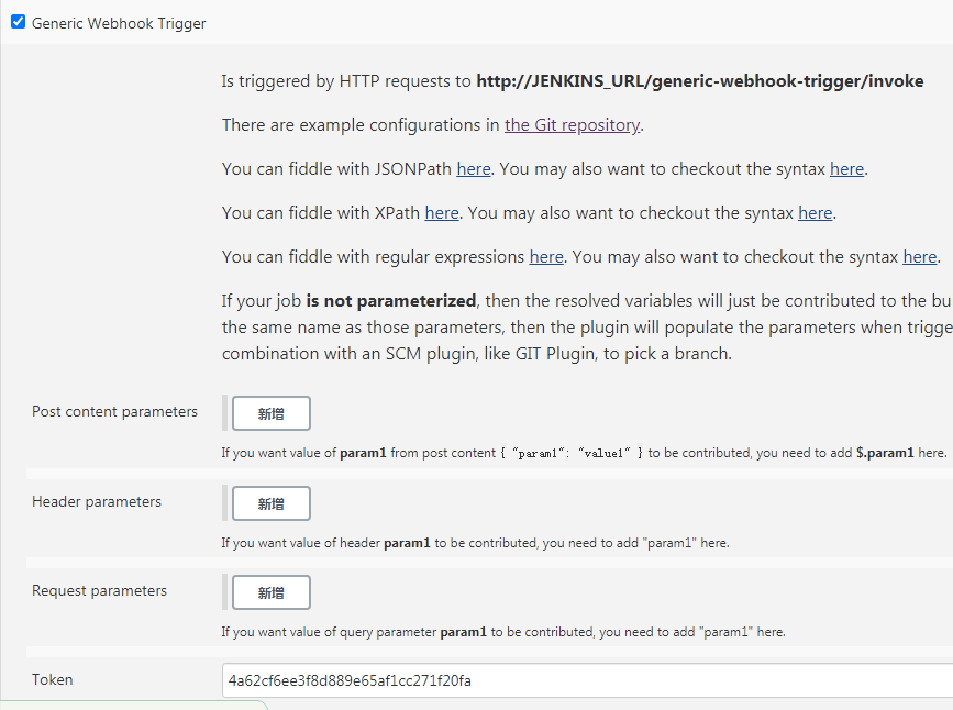 step: 安装 jenkins通用插件:Generic Webhook Trigger job 配置webhook token git仓库配置webhook 来源:oschina链接:https://my.oschina.net/attacker/blog/4456540 标签 webhook Jenkins Gitee git