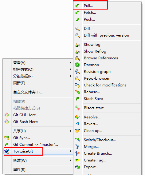 - 步骤1:git 项目目录右键,选择pull