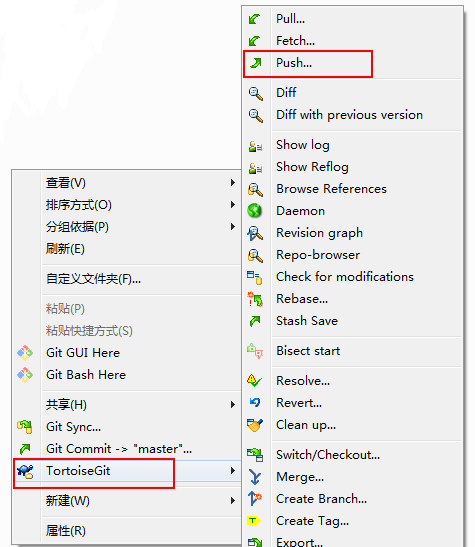 - 步骤1:git项目中右键,选择push