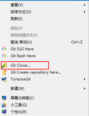 - 克隆项目 : Clone(另一种情况在桌面右键是没有clone的)