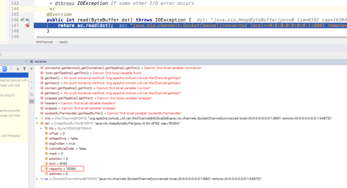 org.apache.tomcat.util.net.NioChannel#read 报错地方