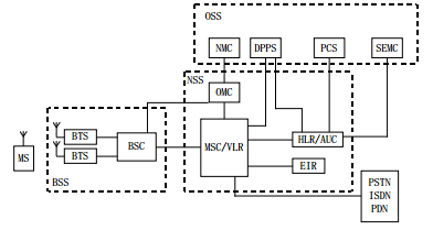 | MSC/VLR: 移动业务交换中心(整个NSS的核心,具有号码存储,呼叫处理,路由选择,回波抵消和超负荷控制等功能 |
