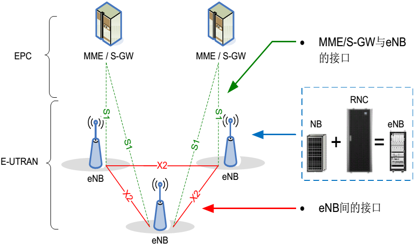 使用扁平网络结构,减少端到端通信时信息转发的次数,同时增加了基站之间光纤的带宽
