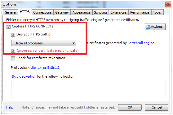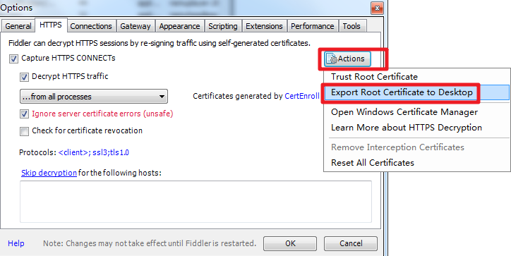 1、fiddler抓取https协议需要安装证书。