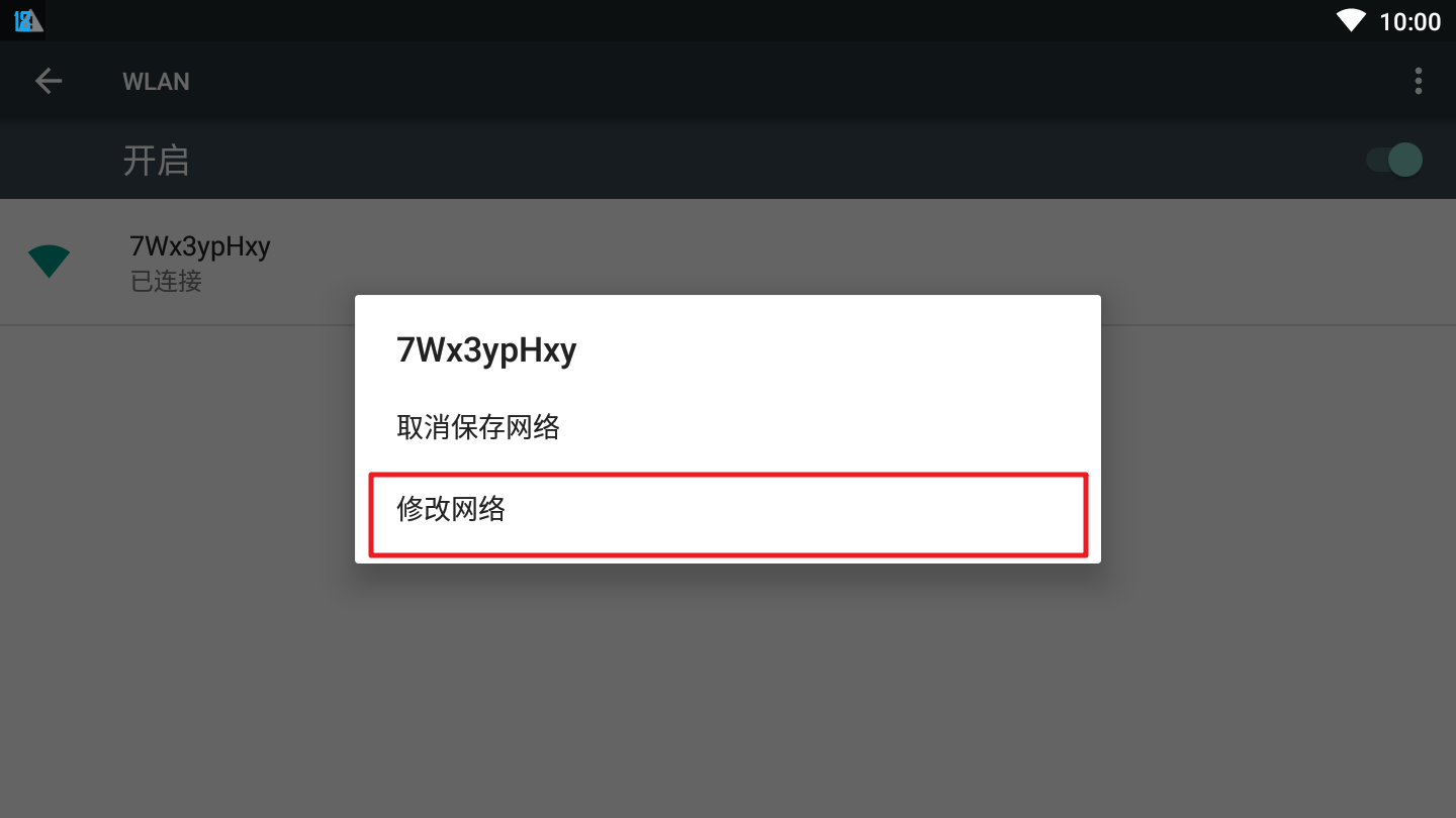 对连接的wifi,长按左键后,选择修改网络