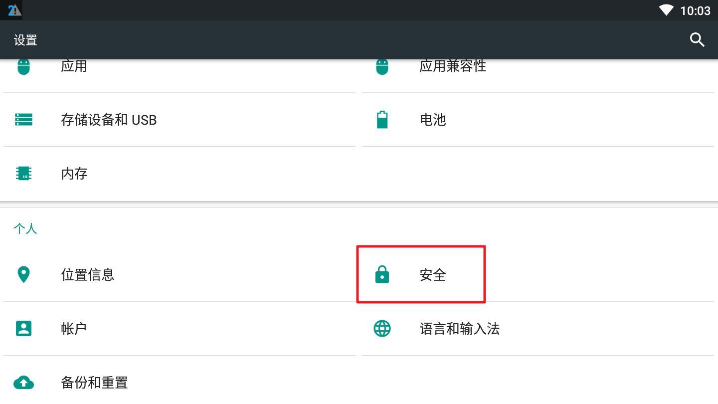 选择设置中的个人,安全选项