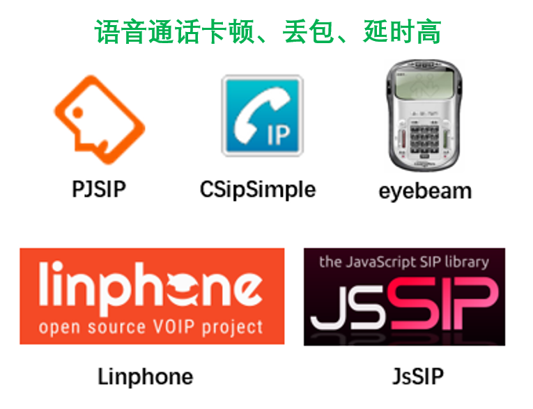 目前市场上已有一些产品出现,有PJSIP、CSIPSimple、Linphone、eyebeam、JsSIP、sipML5等,但是企业真正用起来,语音通话经常出现卡顿、丢包、延时高。