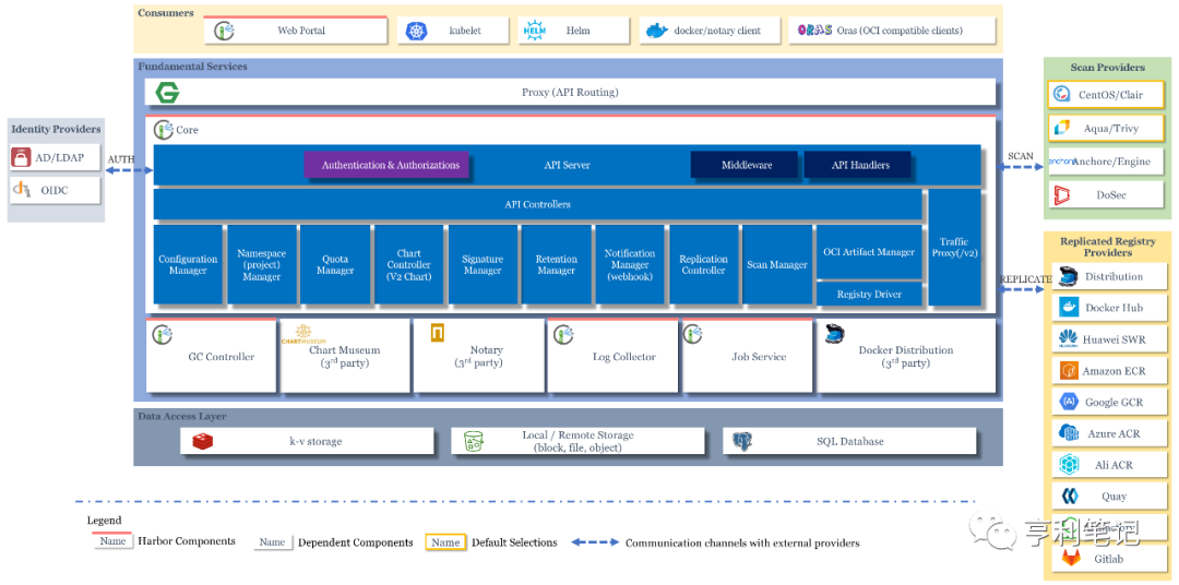 Harbor是个开源制品(artifact)仓库,是首个原创于中国、并且成为 CNCF 毕业级的开源项目。用户可通过策略和基于角色的访问控制来保护制品(如容器镜像、Helm Chart等),扫描镜像并避免受安全漏洞的危害。Harbor扩展了开源项目 Docker Distribution,添加了用户所需的功能(例如安全性,身份,漏洞扫描和管理)。在环境中部署 Harbor 可以提高镜像传输效率,便于就近构建和运行容器应用。Harbor 支持在制品仓库之间复制镜像、Chart 等制品,并提供高级安全功能,例如用户管理、访问控制和操作审计等。