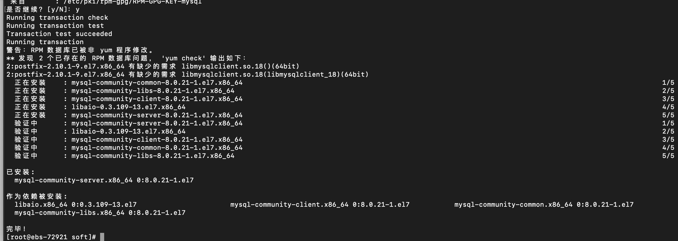 [root@ebs-72921 soft]# rpm -ivh mysql80-community-release-el7-3.noarch.rpm