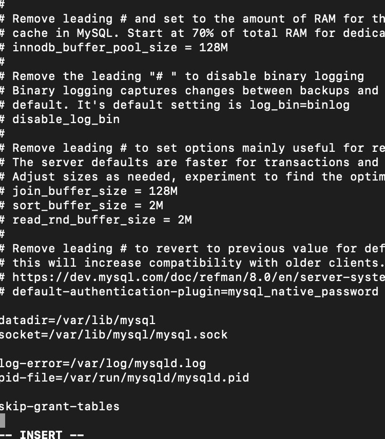 然后 vi /etc/my.cnf 删除一行 skip-grant-tables