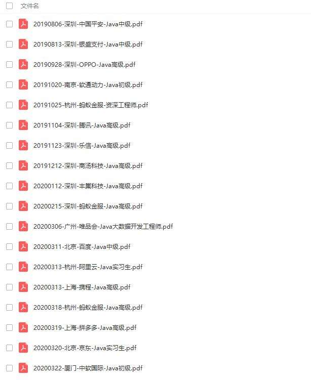分别有:蚂蚁金服、拼多多、阿里云、百度、唯品会、携程、丰巢科技、乐信、软通动力、OPPO、银盛支付、中国平安等初,中级,高级Java面试题集合,附带超详细答案,希望能帮助到大家。