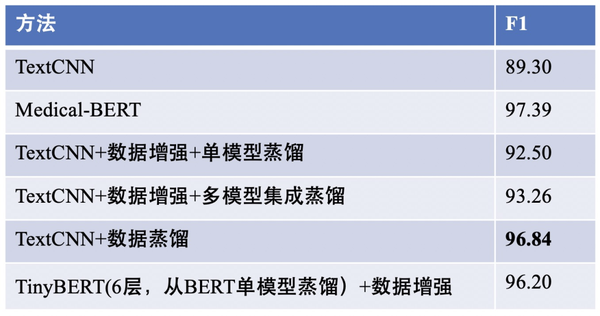 - 集成蒸馏:对不同Teacher模型(如不同的预训练模型)的logits集成,让TextCNN学习。「集成蒸馏+数据增强」可以有效避免指标明显下降。