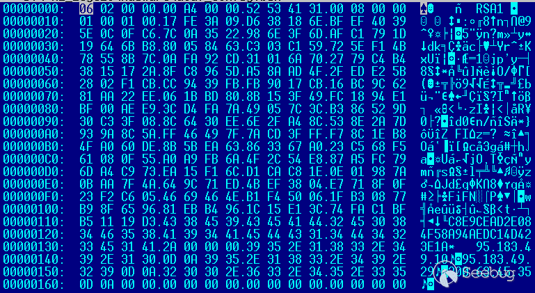 在初始化过程中,最后一步是文件解密并进行解压。使用0xAA密钥的XOR字节进行解密,使用LZNT1算法进行解压。通过此配置,恶意软件会解析RSA公钥、ETag和IP地址来和相关的服务器进行通信。