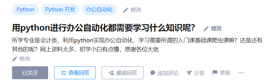 知乎上有人提问:用python进行办公自动化都需要学习什么知识呢?