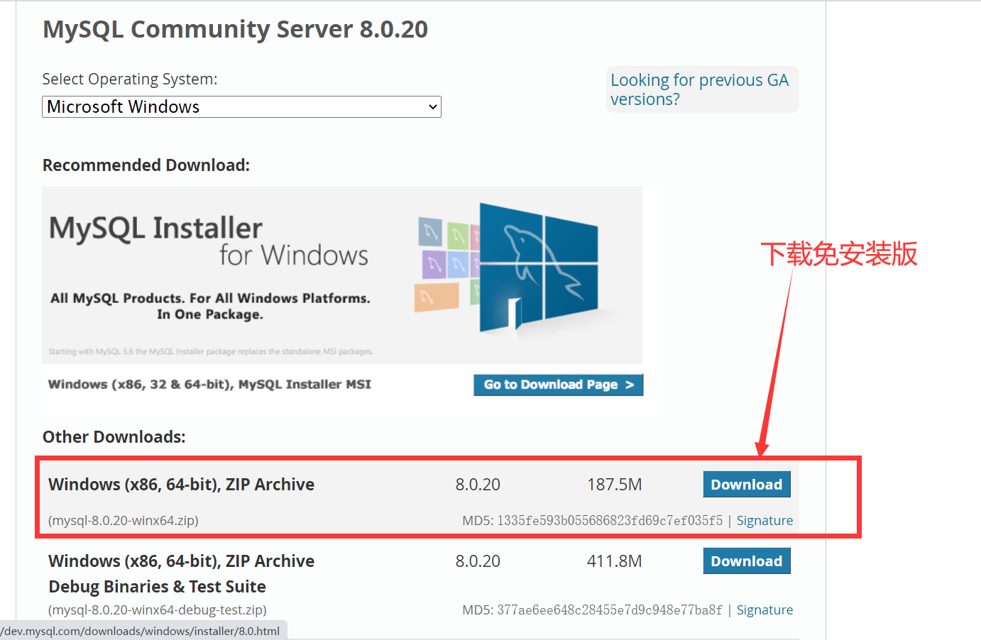 下载地址: https://dev.mysql.com/downloads/mysql/8.0.html