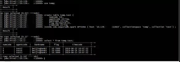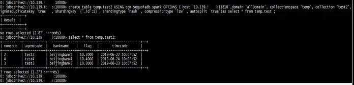 )USING com.sequoiadb.spark OPTIONS ( host '10.139.***.***:11810', collectionspace 'temp', collection 'test') ;