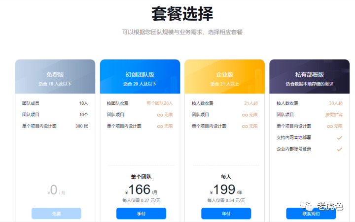 蓝湖将从6月12日起开始进行收费,收费标准目前分为三个档,免费版、初创版(20人一年1833元)、企业版(20人一年3980元)。