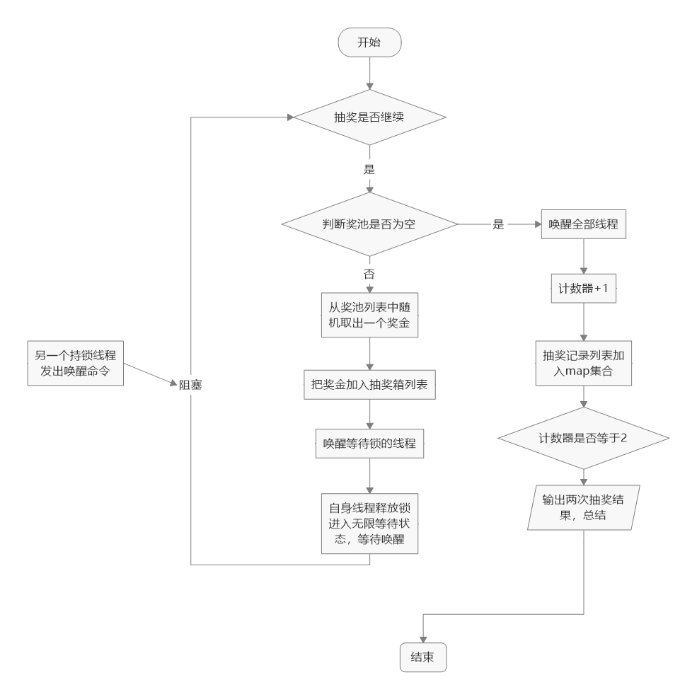 双线程交替执行。有一个抽奖池,该抽奖池中存放了奖励的金额,该抽奖池中的奖项为