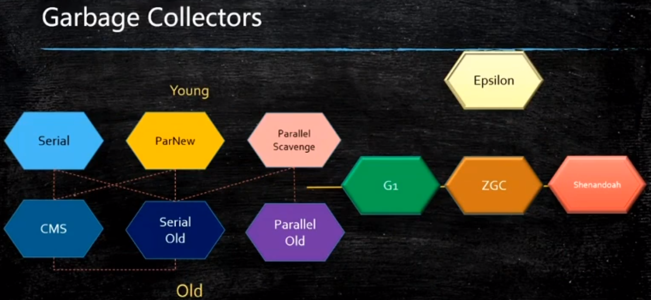 (3) 特殊模型:Epsilon(这种垃圾回收器不回收垃圾,只是跟踪垃圾的产生和回收,但是这个回收只是动作,其实没真正回收。Epsilon有两个用途:<1>用于调试;<2>内存很大,程序很小很快就能运行完成。)